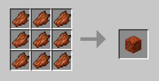Familycraft Basic Recipes. This add-on contains some fun new blocks along with some new items and recipes to enhance your worlds. This base add-on contains loot drops and is required for other familycraft add-ons. Blaze Block (light source) Ender Block Flesh Block Glowstone Dust Block (light source) Gunpowder Block Leather Block Steele Block Skull Blocks (light source) Paper Lanterns Wood (light source) Paper Lanterns Bamboo (light source) New Drops Animal Hides: drop from various wildlife and can be used to craft leather Chitin Fiber: drop from shelled animals such as scorpions, used to craft chitin leggings (coming soon) Slime Drop: can be obtained by using a stick on frogs and can be used to craft slime balls Steel Nugget: obtained by smelting steel items (comming soon) Charcoal Nugget: obtained by smelting most useless items Dark Totem: dropped from high level mobs which gives instant omen effect Craftable Items Steel Ingot: crafted from steel nuggets or by combining iron and coal. (Steel items coming soon) Packed Snowballs : crafted by packing 9 snowballs, a snowmans weapon of choice. Slime Ball: crafted using 4 slime drops Poison Arrow: crafted using slime drops and arrows Mob Spawner: crafted with a dispenser, diamonds and iron Leather: crafted from animal hides Charcoal: crafted using charcoal nuggets Coal Block: Now craftable from charcoal Green Grapes: regeneration effect Apple: absorption & regeneration effects Dark Totem: bad omen effect Download add-on This website, tools and add-ons represent a lot of work. If you find them useful a donation will help keep this going and help me bring more add-ons to the website. Click here to donate.